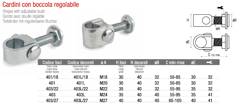 Adjustable Gate Hinge - Brevetti Adem - Smooth or Decorated Bush