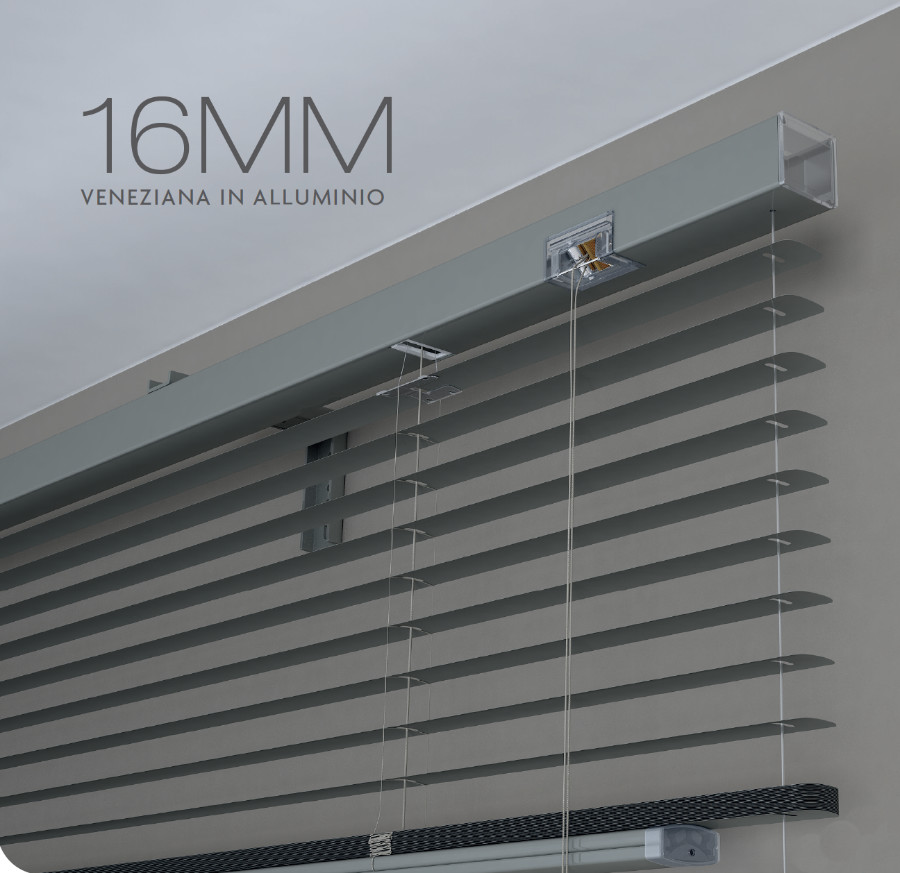 16 mm Slim Aluminum Venetian Blind is a cord operated blind with an orientation rod. Aluminum venetian blind model for