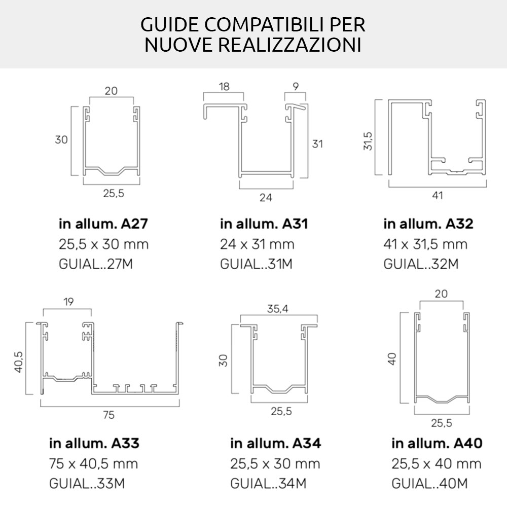 2. Replacement or new installation of roller shutters and sliding guides: for the width of the roller shutter, with reference to the guides to be used, the necessary tolerances must be taken. You can use the old guides if they are in good condition and if they have at least 16.5mm of usable space inside.