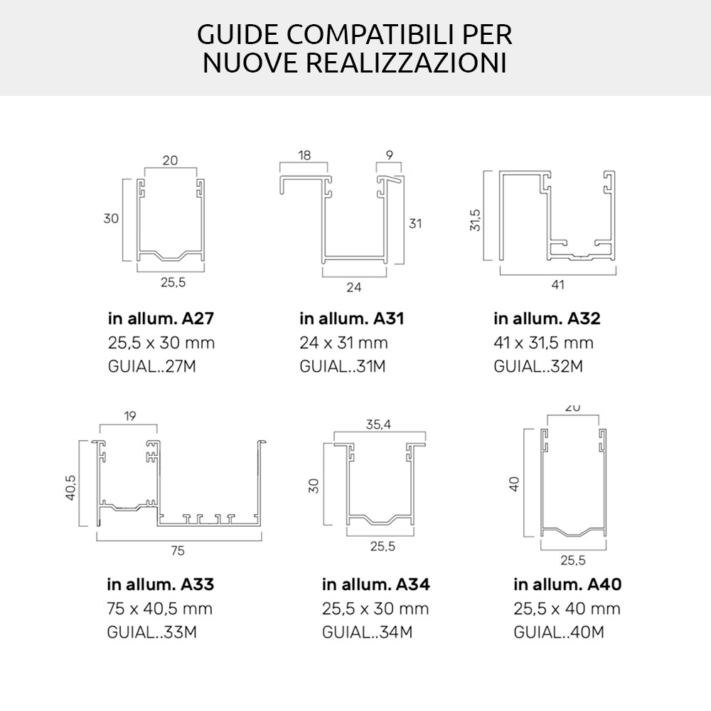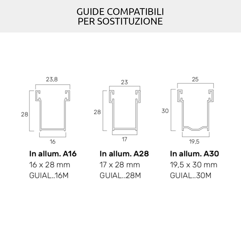 2. Replacement or new installation of roller shutters and sliding guides: for the width of the roller shutter, with reference to the guides to be used, the necessary tolerances must be taken. You can use the old guides if they are in good condition and if they have at least 16.5mm of usable space inside.
