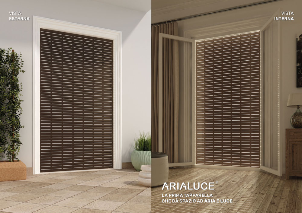 AriaLuceTherm Pinto roller shutter in PVC and insulated aluminum: improves ventilation, aeration and light in the home. Made in Italy.