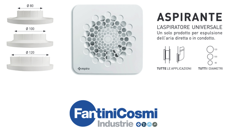FANTINI COSMI ASPIRANTE Bathroom Extractor Fan – Universal Ø 80/100/120 mm, Standard or with Timer : designed for effective and silent ventilation in small and medium-sized civil and commercial environments.