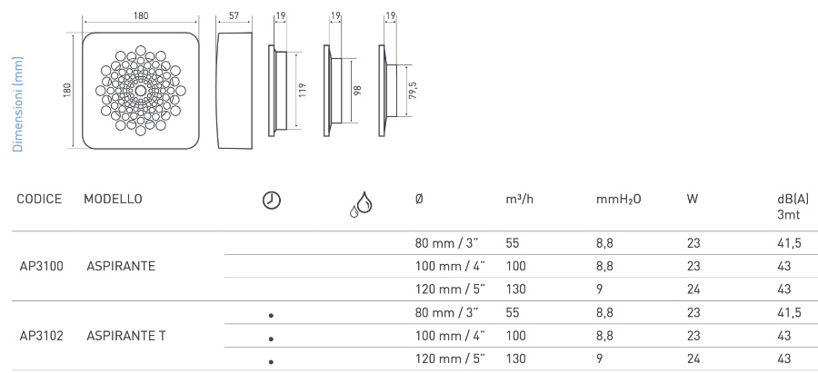 Bathroom Extractor Fan FANTINI COSMI ASPIRANTE – Universal Ø 80/100/120 mm – Standard Version or with Timer