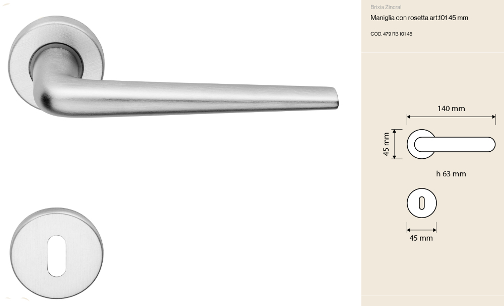 Brixia Zincral Linea Calì - interior door handle with rosette and escutcheon, with an elegant design and available in various finishes Made in Italy.