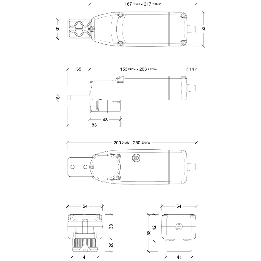 Chiaroscuro SL 80 230Vac (ex Chiaroscuro Slide 80) is a motor for sliding shutters with 110 ÷ 230 Vac power supply - Max total weight 160 Kg - Force 80 N.