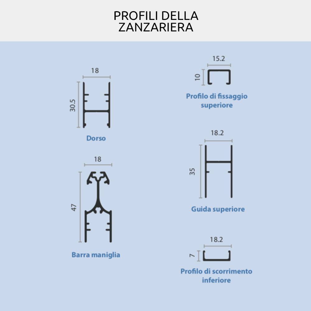 • Light measurement - the mosquito net will be supplied with a base and height 2 mm less than the size of the compartment.