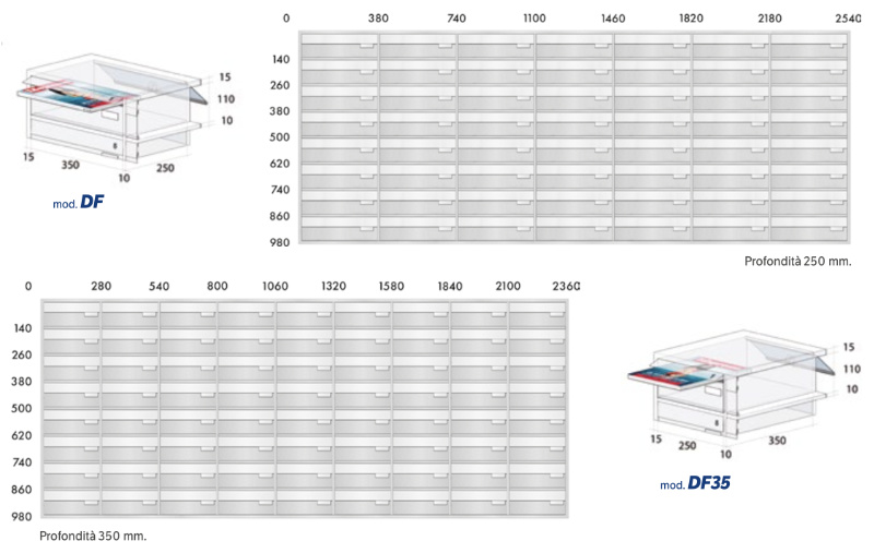 advertising boxes are very useful for containing advertising and preventing it from being dispersed in the hall. The advertising boxes can be created in single, double or triple dimensions compared to the standard boxes and are inserted harmoniously in the design of the filing cabinet.