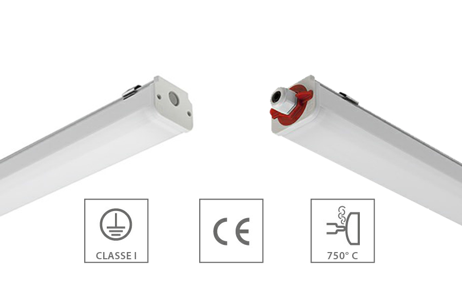 - Body in co-extruded UV stabilized polycarbonate in double finish; satin for the optical compartment and opaque for the electrical auxiliaries compartment;