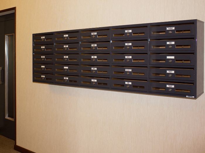 Condominium mailbox versions: wall-mounted or flush-mounted
