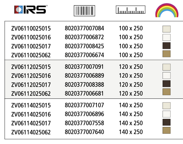 The minimum and maximum sizes depend on the version you choose: in this table they are indicated together with the available colors.