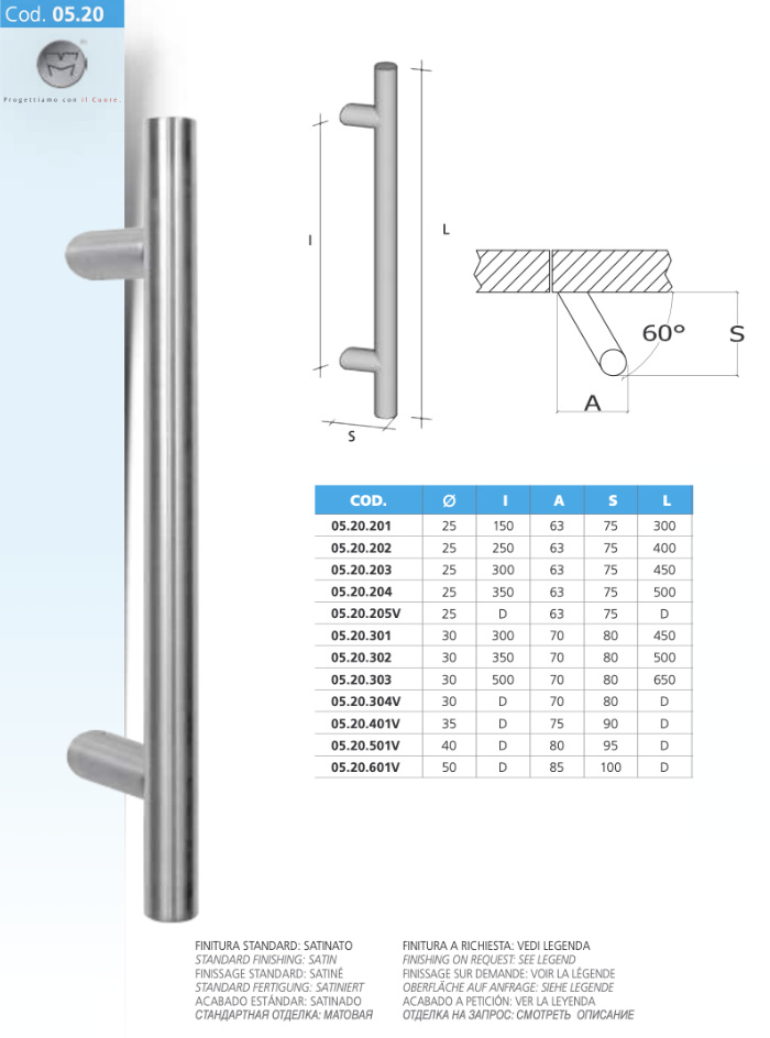 Maniglione per Porta in Acciaio Satinato o Lucido MPM 05.20