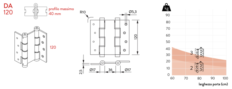 cerniera doppia azione justor da120 misure