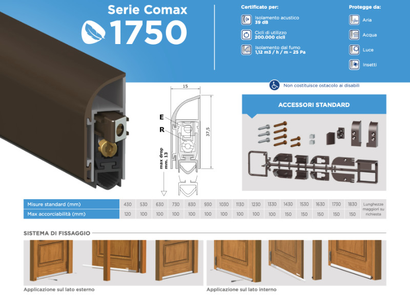 Comaglio 1750 Comax Series is the automatic draught excluder with a patented system that can be fixed with screws.