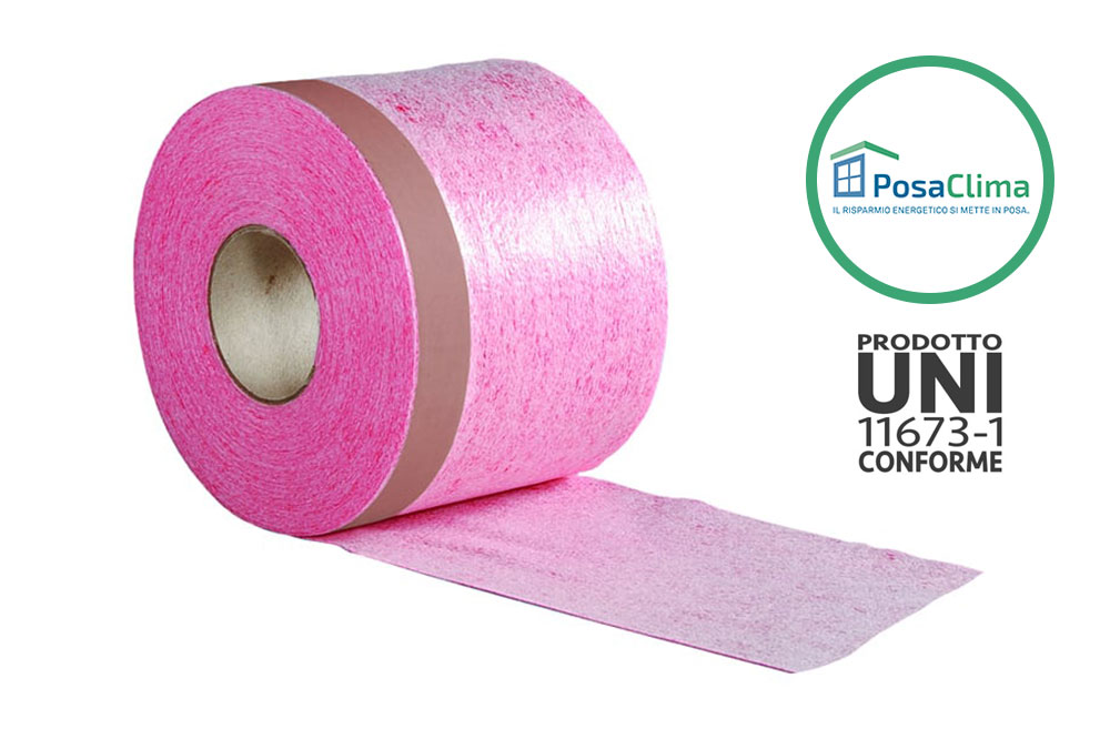 For sealing the subframe on the side facing the internal environment . After filling the joint with foam, this film is applied with the self-adhesive side to the subframe and glued to the wall. In this way, the joint will become permanently impermeable to air and steam and will offer excellent results in the event of a Blower Door test. It is the cheapest alternative to the use of internal plaster holder profiles, but it requires more time for application and above all, for a good adhesion, it needs a plastered shoulder.