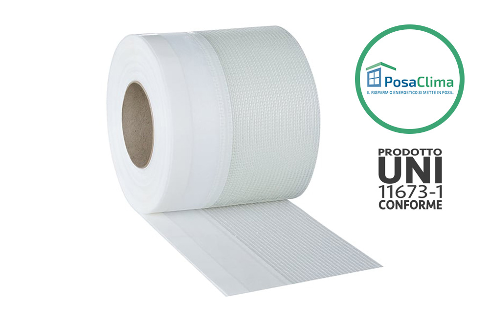 Folienband Net PosaClima film with integrated air-vapor sealing plaster net in white synthetic fabric with variable Sd.