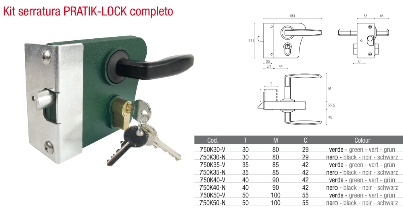 Lock for manual gate for leaves sold in complete kit Pratik-Lock Adem.