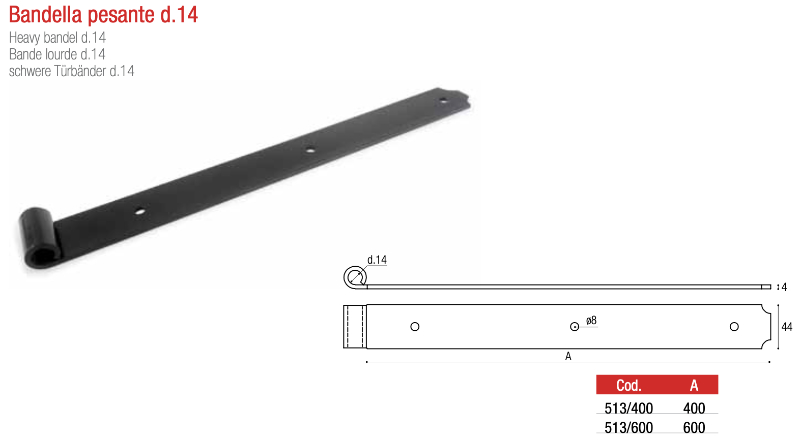 heavy strap d.14 , code 513 Adem, is an accessory for fixing wooden doors and gates.