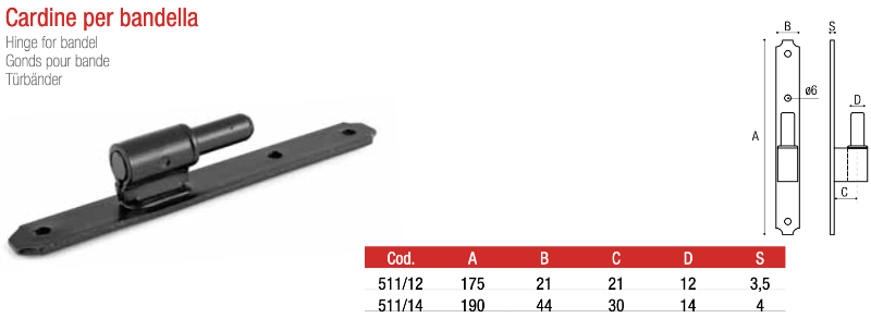 Cardine per Bandella 511 Adem - Accessori per Porte in Legno