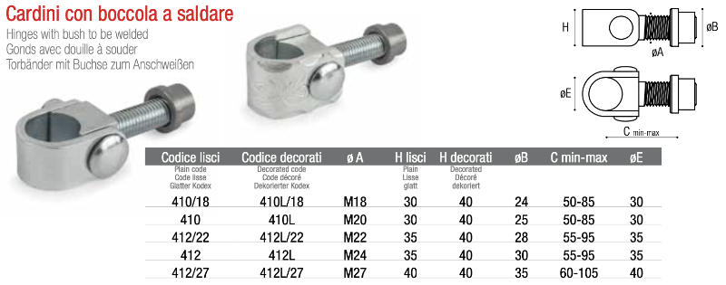 Hinges with bush to be welded for iron gates, smooth or decorated collar (select the Adem code you want).