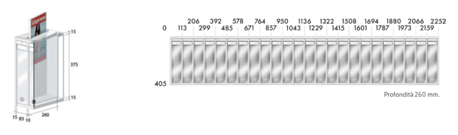 The advertising boxes are very useful for containing advertising and preventing it from being dispersed in the hall. The advertising boxes can be created in single, double or triple dimensions compared to the standard boxes and are inserted harmoniously in the design of the filing cabinet.