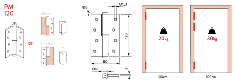 - For 3 installed units : door width 100 cm, door weight 30 kg , number of cycles 250,000.
