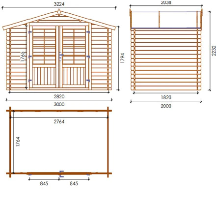 Dimensions wooden house Kelly Losa