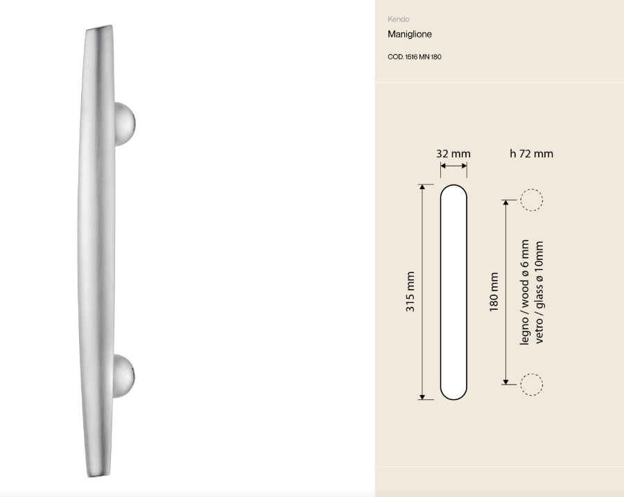 Kendo Linea Calì - Maniglione per Porta su Supporti Laterali