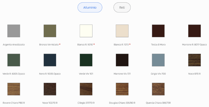 Color range: the mosquito net manufacturer Officine Rami offers a wide range of fabric colors (select the variant you want). The colors represented in these tables have a purely indicative value and cannot in any case be considered as reference colors for any color differences compared to the real ones.