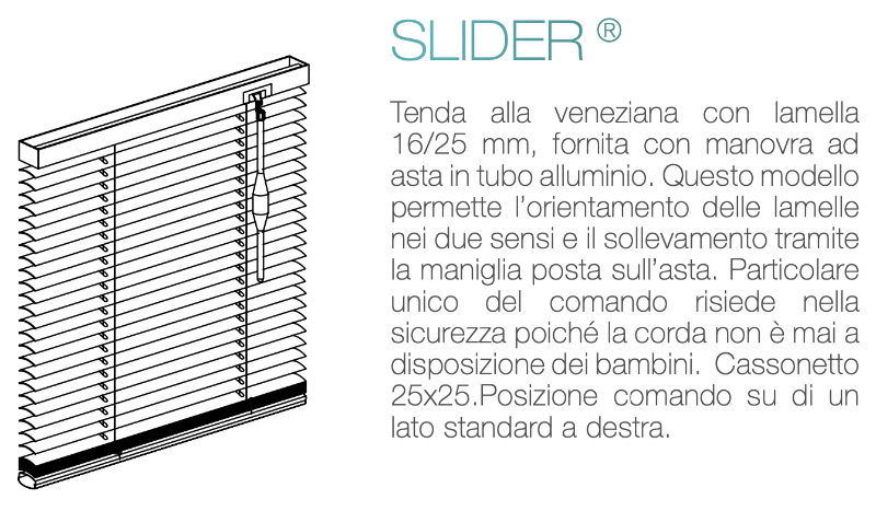Tenda Veneziana su Misura con Comando Slider 25mm Alluminio