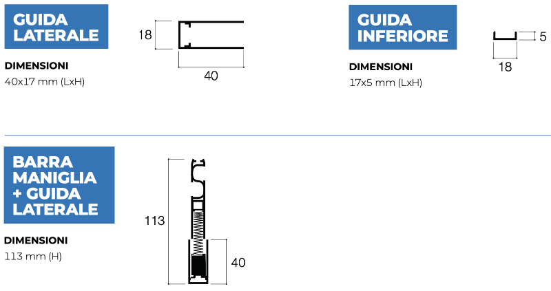 Lateral sliding mosquito net with floor guide of only 4 mm, which always allows an effective hermetic closure. It is suitable for both windows and doors. The net is kept taut by threads that do not prevent it from coming out in case of wind. Overall dimensions of only 18 mm.