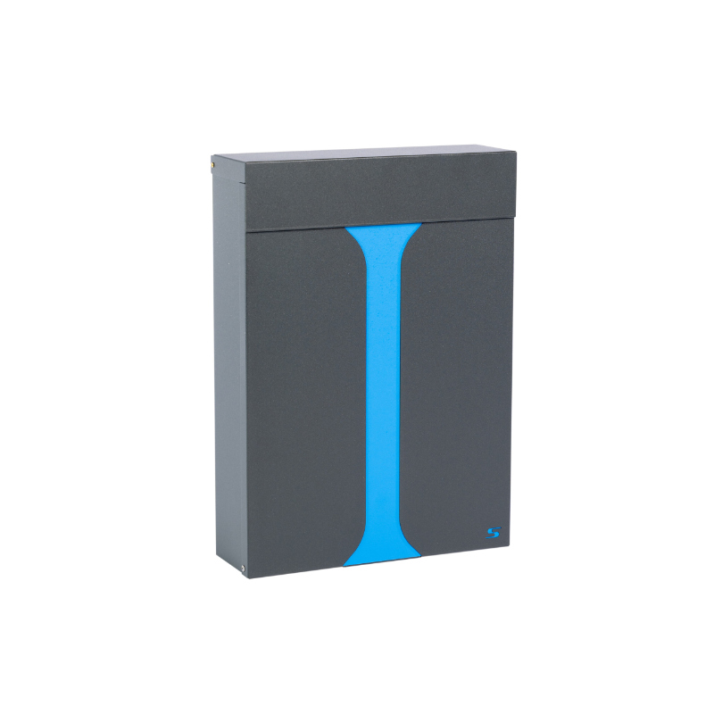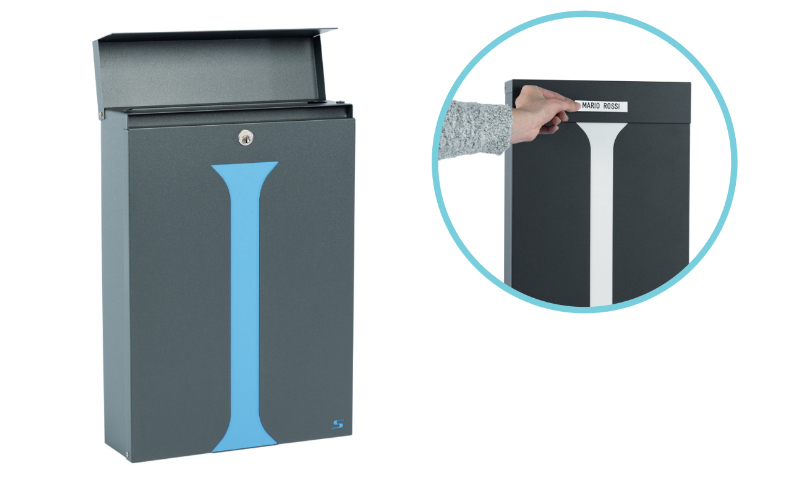 Mailbox S23 - Cod. 10-223.84/71 - Iron gray painted sheet metal - Light blue cover