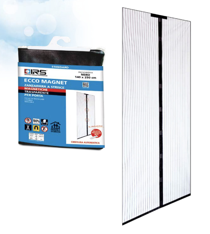 The Ecco Magnet magnetic mosquito net for French windows is made up of 2 panels of 70cm x 250cm which are unicoscono in the center through 10 magnets to cover dimensions up to 140cm x 250cm .