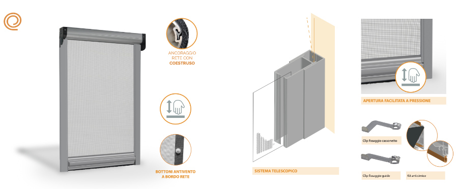 - Livia Click Up is a vertical insect screen with spring winding, buttons on the edge of the net and an easy-to-push opening system;