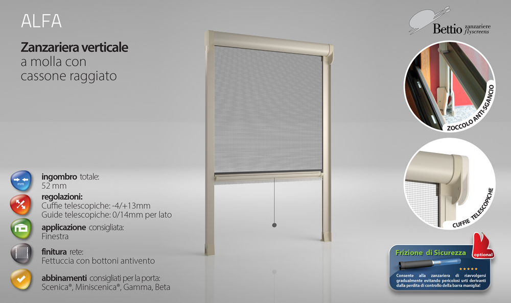 Thanks to this double guide, the adjustment and the installation of the mosquito net are both perfect, both from a technical and aesthetic point of view, also in presence of strong irregularities of the masonry.
