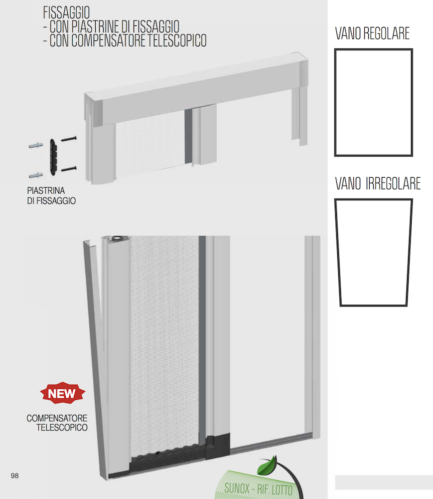The telescopic compensator allows to compensate for differences in width up to 14 mm while maintaining the headrail always perpendicular to the floor.