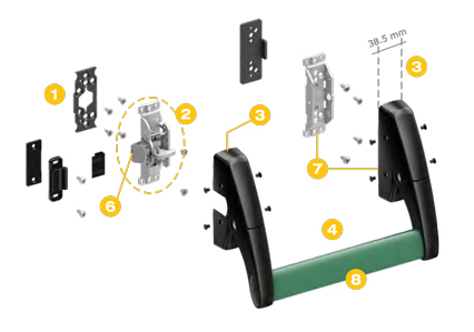• 1) All supports and latches are screwed onto steel counterplates (which can also be welded) for easy, solid and rapid fastening;
