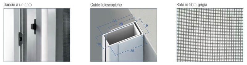 The Pasini V50 L insect screen is the standard lateral version of the VICTORIA range.