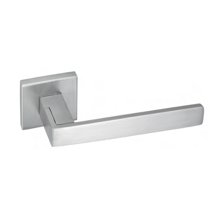 • HANDLE WITH EDGE WELDED PLATE ON SQUARE ROSETTE with return spring. Handle grip length 130 mm; height: 20 mm