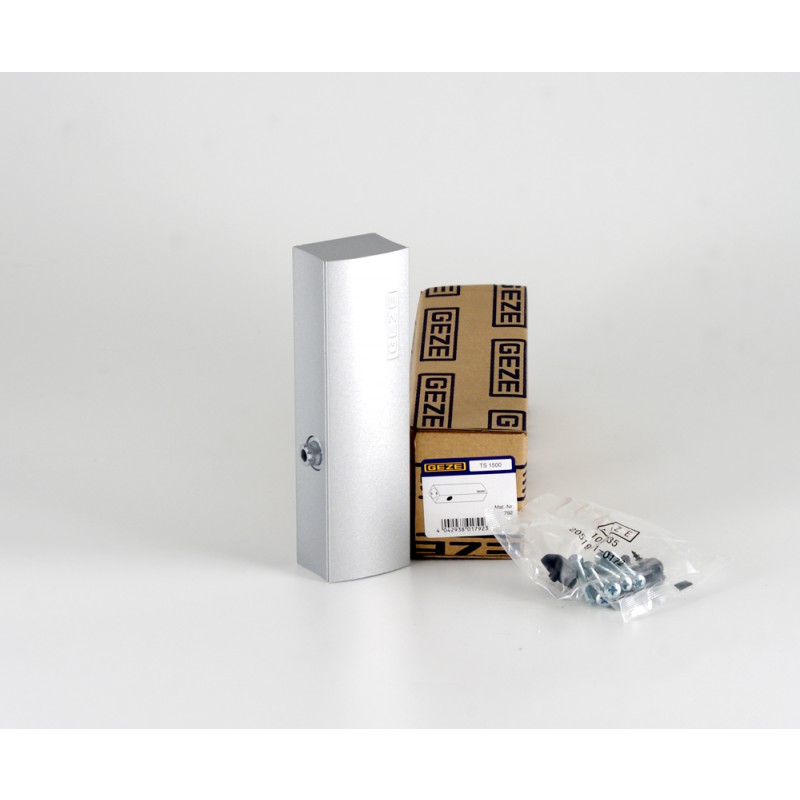 GEZE TS 1500, with arm V-retainer with adjustable power, complete with hardware and installation template (mounting plate not included).