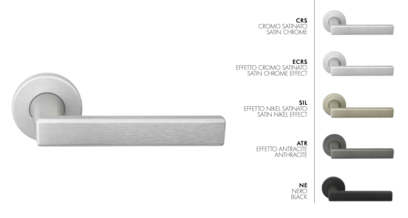 Ponza Arieni: door handle on round rosette, made in Italy.