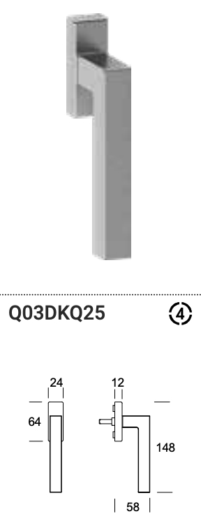 Reguitti Genève Q03 / 9QM, DK window handle. Made of stainless steel.