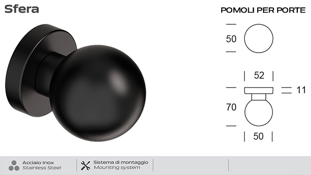 The design of this steel ball knob was created by Studio Reguitti Inox.