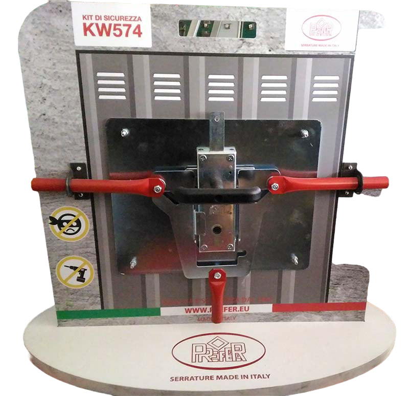 The Prefer KW574 safety kit for up-and-over garage doors is equipped with a 4-point lock which makes it impossible to open the up-and-over garage door by levering from below.