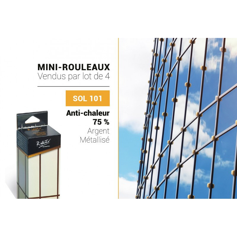 Reflectiv SOL 101 film, with 75% sun protection, is ideal for indoor installation. This film is designed for application on glazing to reduce solar heat and glare. It offers a significant improvement in comfort in rooms exposed to the sun , contributing to real energy savings, particularly when air conditioning is in use. SOL 101 film is only suitable for clear double glazing smaller than 1.20m², clear glass between 4 and 10mm thick and tempered glass.
