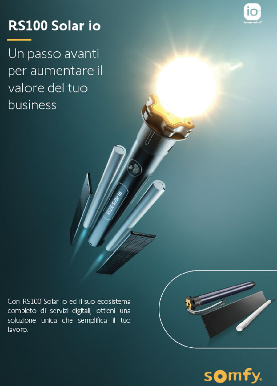 Somfy's line of RS100 io roller shutter motors is enriched with the addition of a new version powered independently by solar energy.
