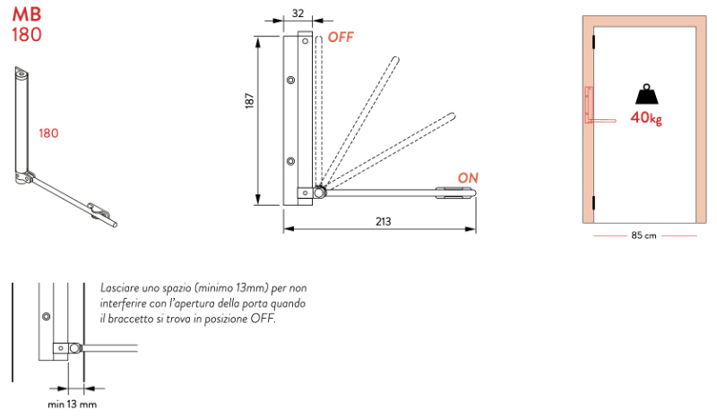 Door width 85 cm, door weight 40 kg. Resistance to more than 250,000 cycles.