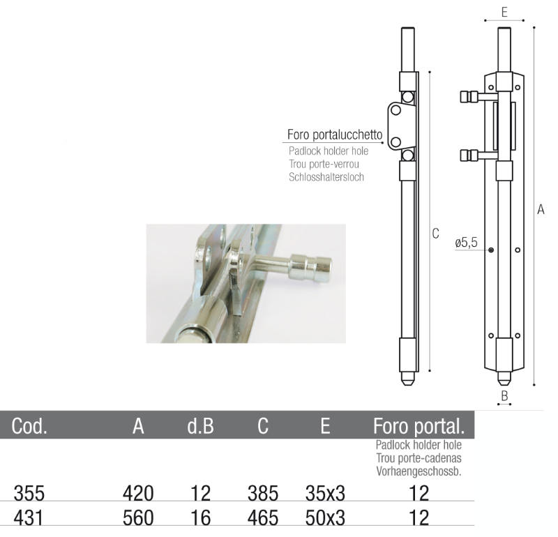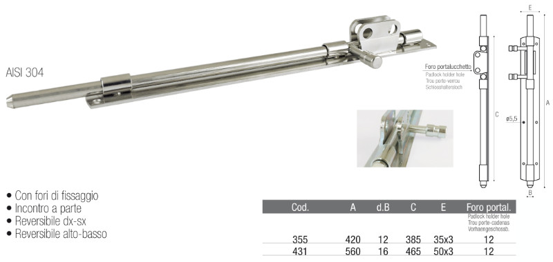 Catenaccio Acciaio Inox Verticale Misure - Brevetti Adem