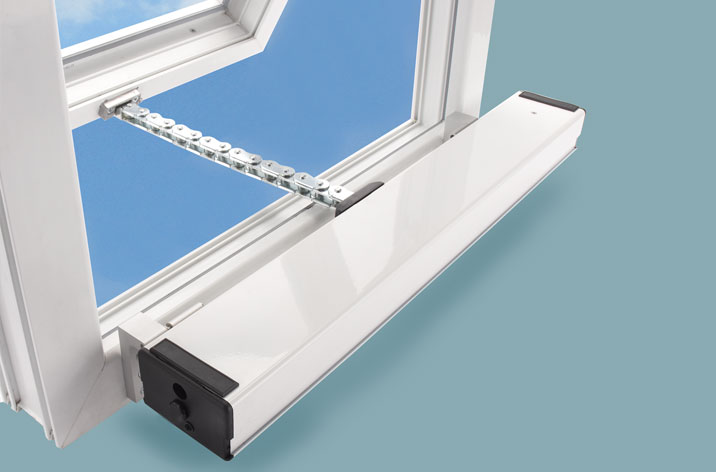 Supermaster chain actuator used to automate high level windows and lightweight roof vents and domes.