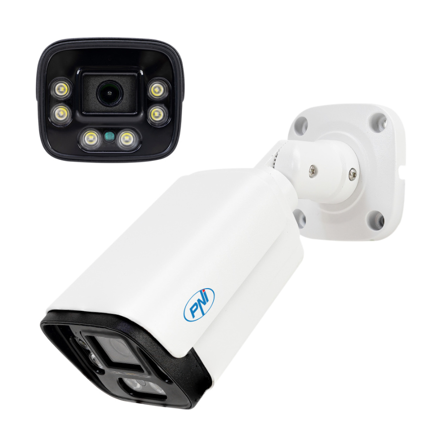 PNI IP125 video surveillance camera with H.265 video compression, suitable for indoor and outdoor use thanks to IP66 protection.