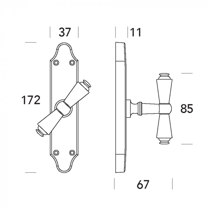 Here is the technical drawing with the measurements of the Cremonese window handle.